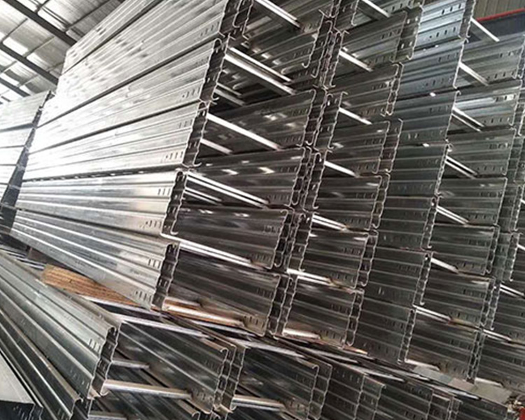 4)需要屏蔽電磁干擾的電纜線路.或有防護外部影n向如戶外日照。腐蝕性液體、易燃粉塵等環境要求時,應選用無孔托盤式電纜橋架。